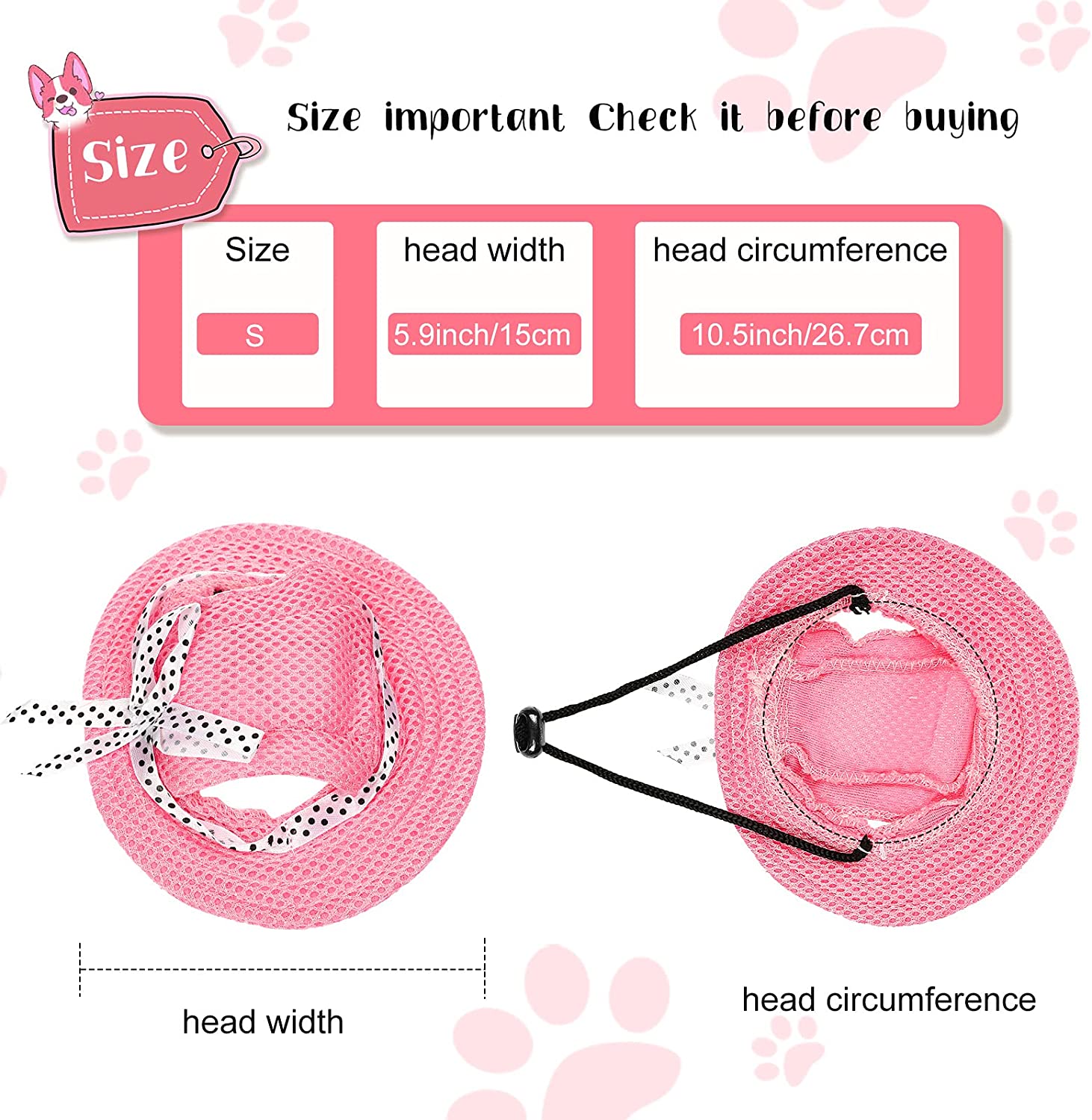 - Comfotable size: this hat is designed for small breeds and belongs to S sizes; The head width is 5.9 inch/ 15 cm, head circumference is 10.5 inch/ 26.7 cm; Cute and fashion dog hat is nice for your puppy, special hat to make your dog unique and attractive