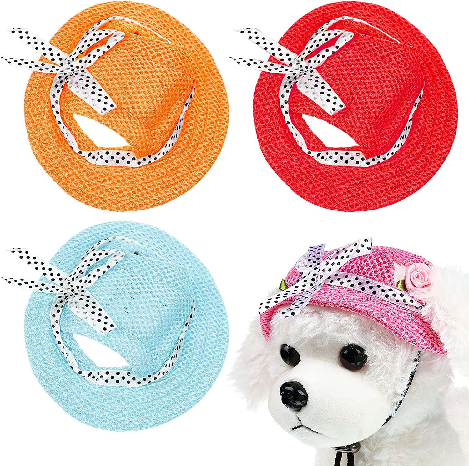 - Adjustable wearing: designed with ear holes at the top and the adjustable chin rope, this hat fits over the dogs' ears and keeps the hat on nicely; It's easy to adjust suitable tightness