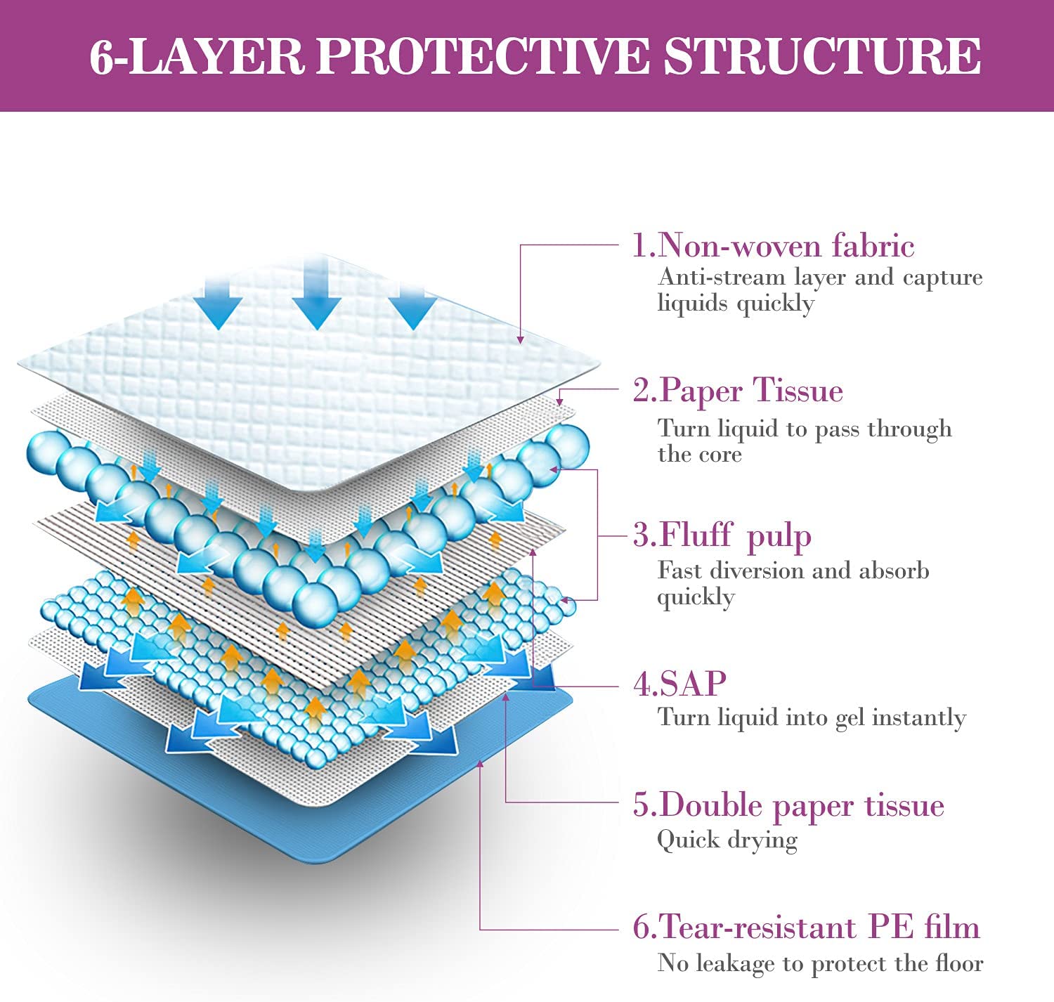- 【SUPER ABSORBENT & Thicker】Thickened wee wee pads for dogs and 6-layer protection design makes our XL dog pee pee pads more absorbent than the most puppy potty pads on the market.