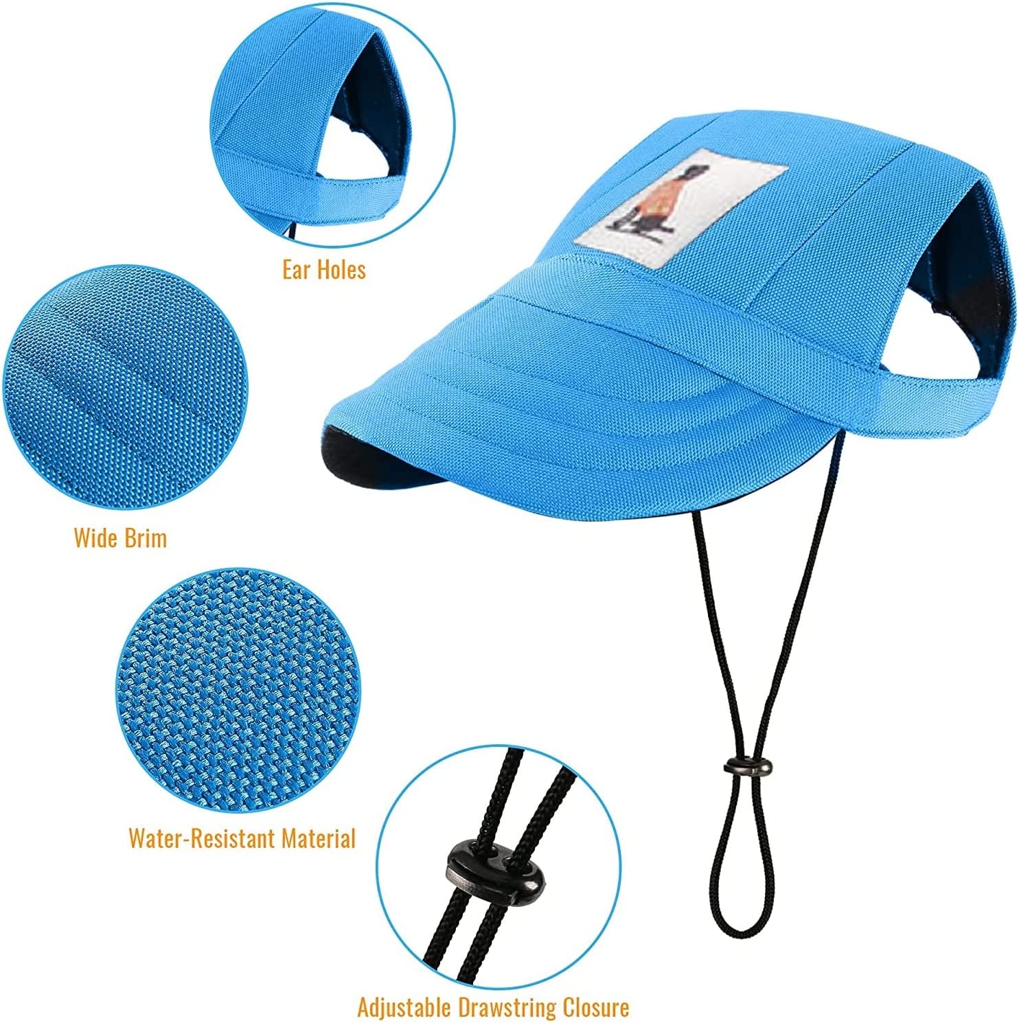- 【Excellent Hat Design,Material】: High quality Oxford cloth outer layer and canvas lining (100% cotton) durable and breathable; Two ear holes and breathable material on the top, it can stay comfortable even when wearing for long time; Adjustable neck strap makes The hat remains stable during any outdoor activity;A large hat surrounds the dog's forehead to keep the glasses out of direct sunlight