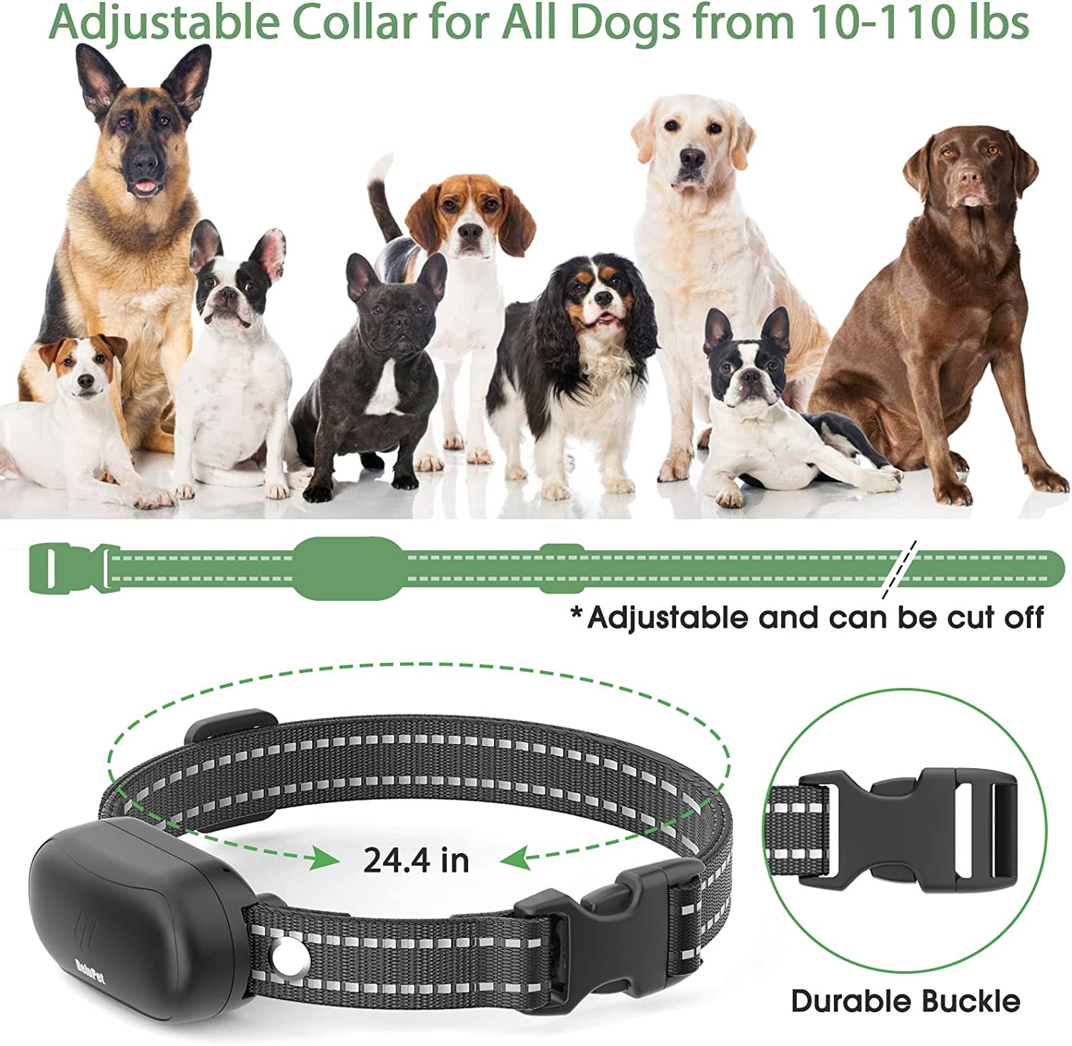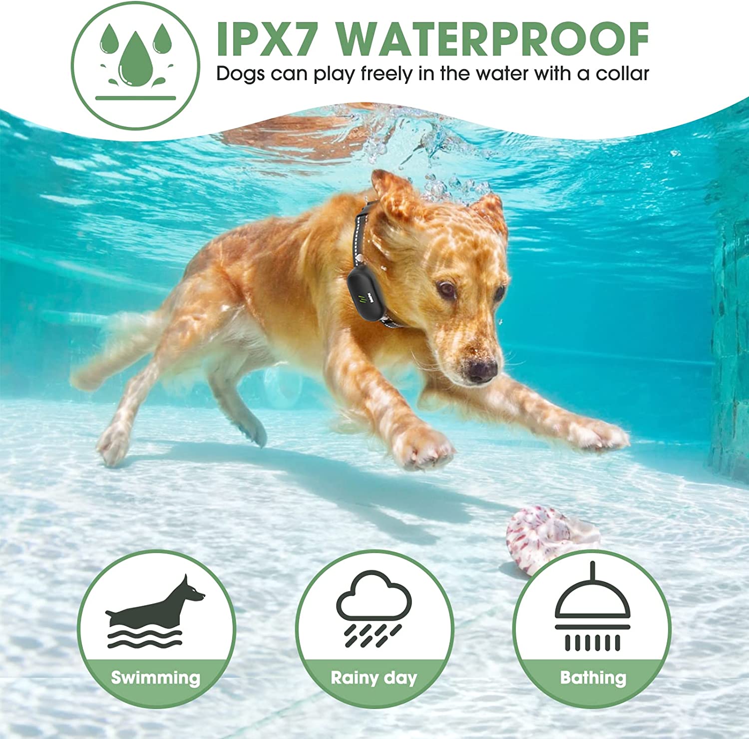 - 【Waterproof Receiver & Comfortable Collar】 IPX7 waterproof collar is convenient for dogs playing around a pool or in the rain freely. The e collar strap can be adjusted, fitting dogs over 10 lb with neck sizes 8-24.4inches!