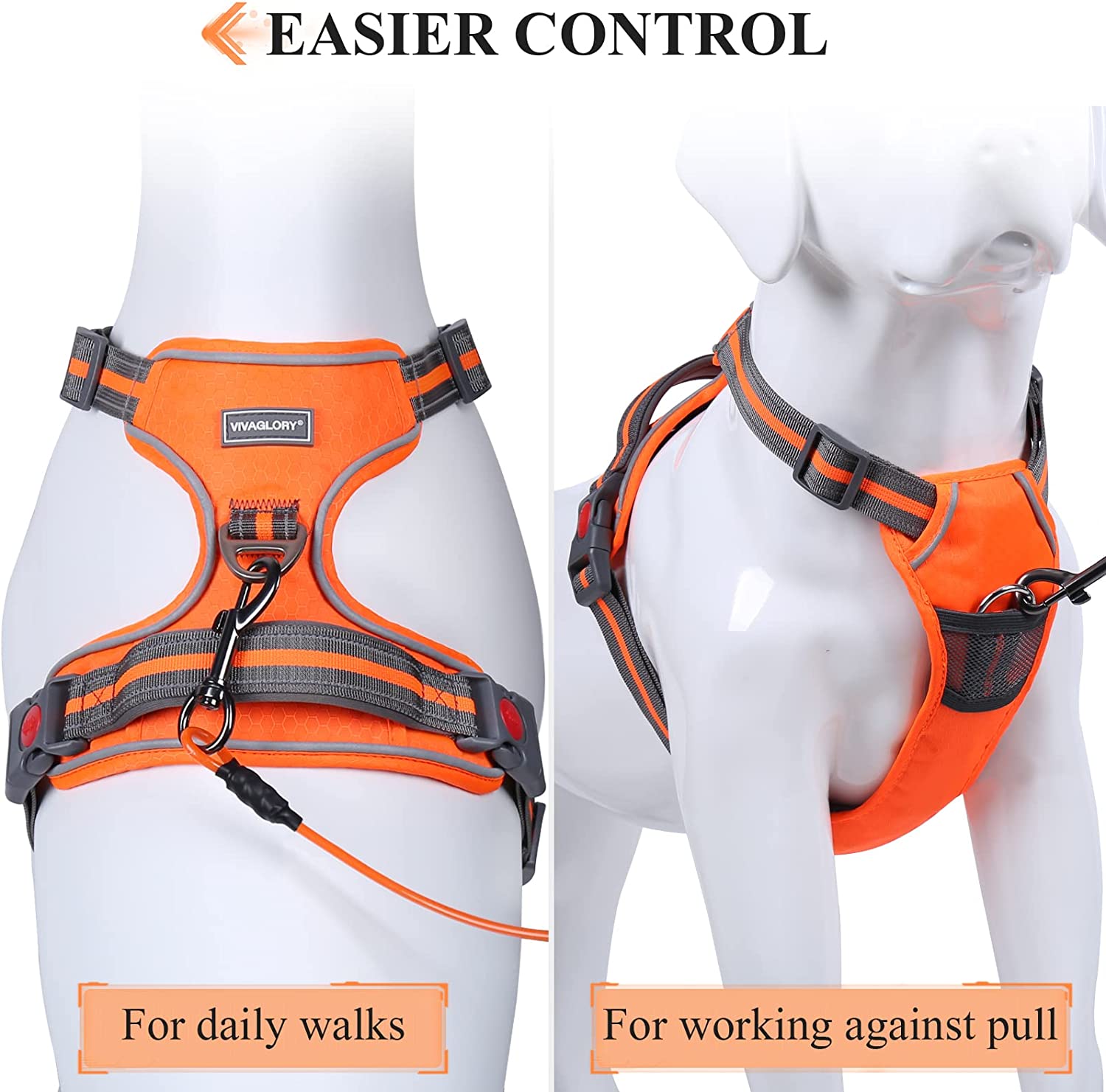 Pull Dog Harness, Soft Padded Easy Control Handle Dogs for Walking & Training, Escape Proof Reflective Pets Vest Harnesses with Front Hook