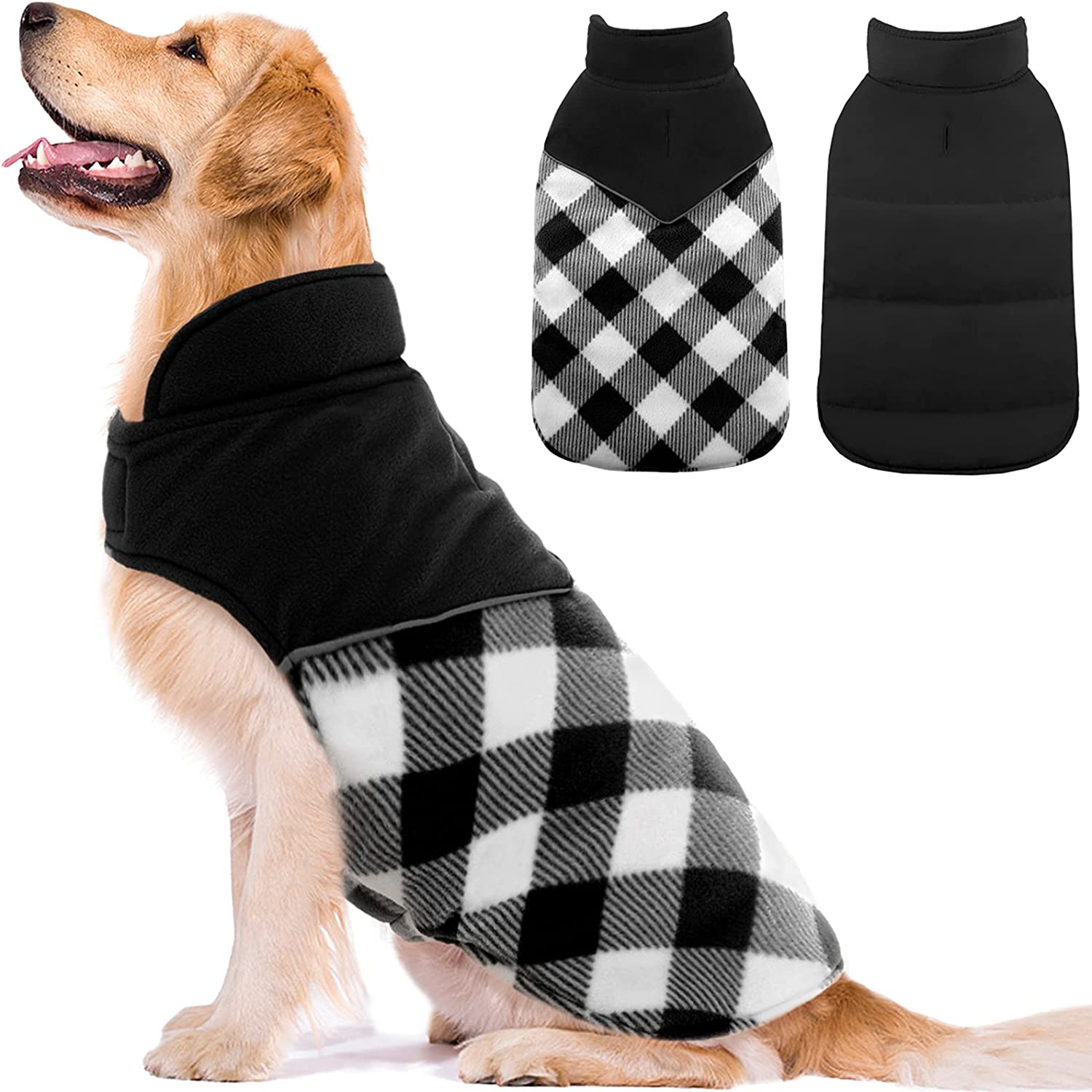Reflective Cold Weather Dog Jacket, Reversible British Style Plaid Dog Coat Warm Cotton Thickened Vest Windproof Outdoor Apparel