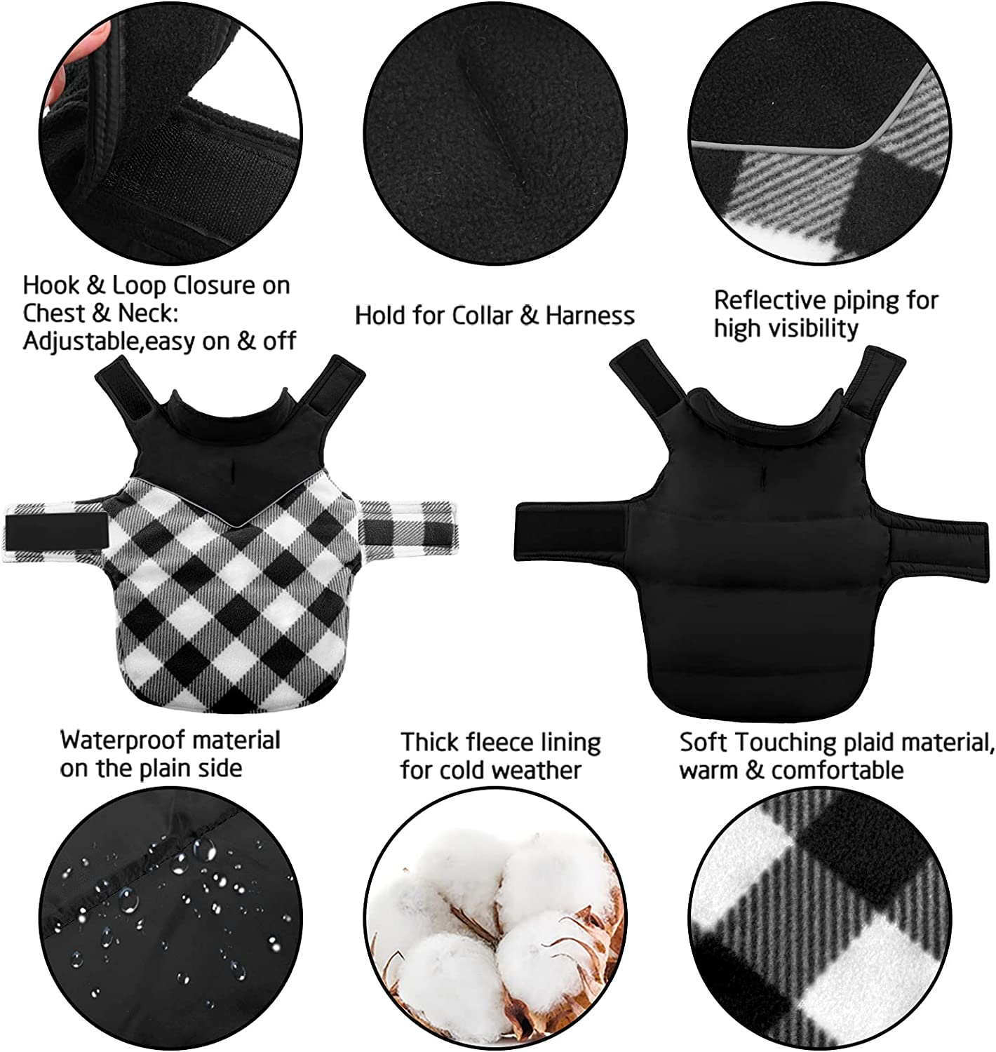 - CREATIVE DESIGN: HOOK&LOOP closure around the neck and chest, easy to put on and take off. Reversible make your furry friend look smart and charming in this winter.