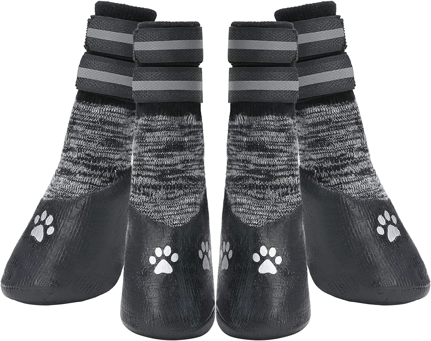 - 🐾MATERIAL: This dog boot is made of soft knitted fabric, and it has excellent elasticity, can completely fit the shape of the dog's foot. Dogs will be very warm and comfortable to wear.