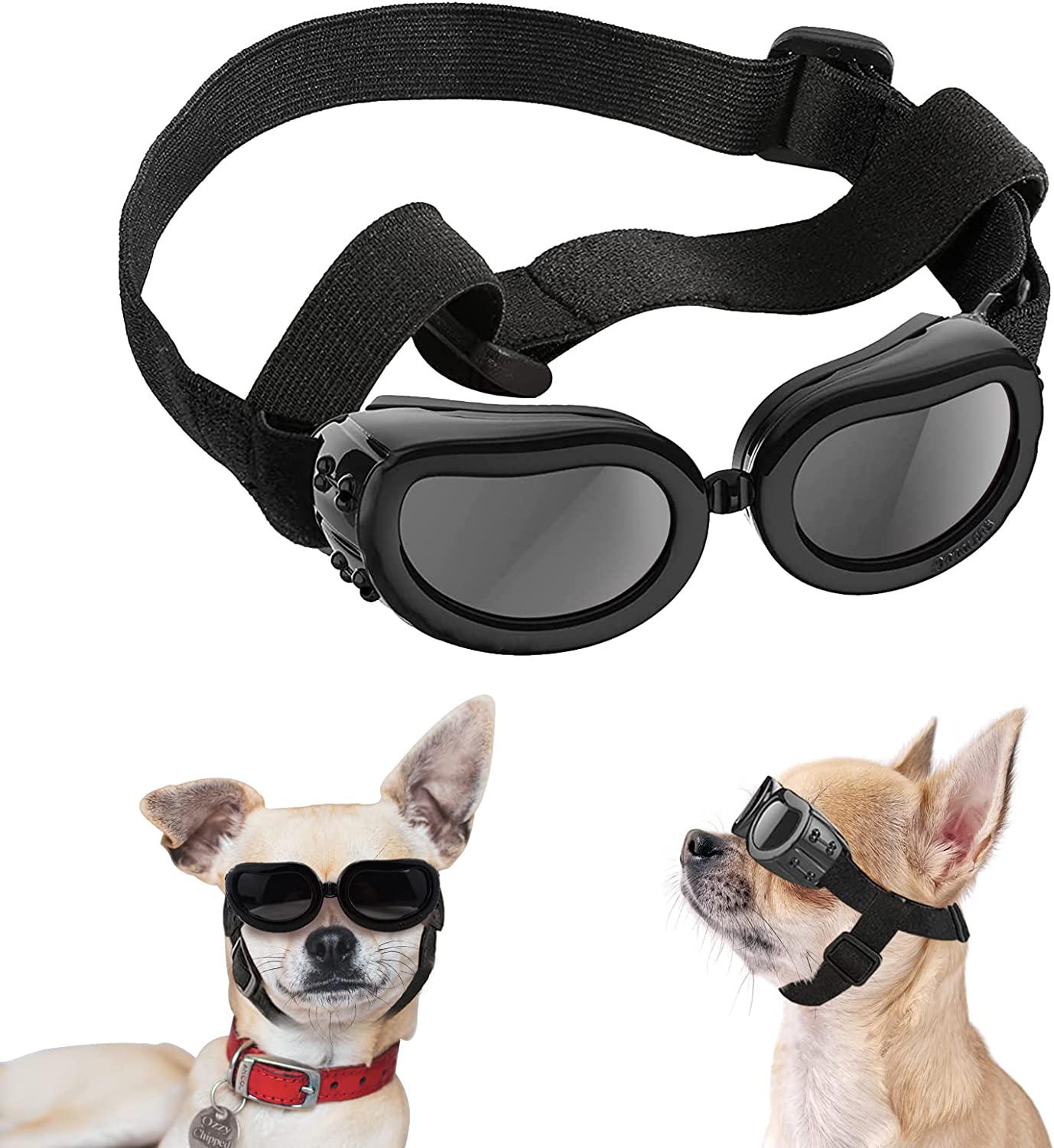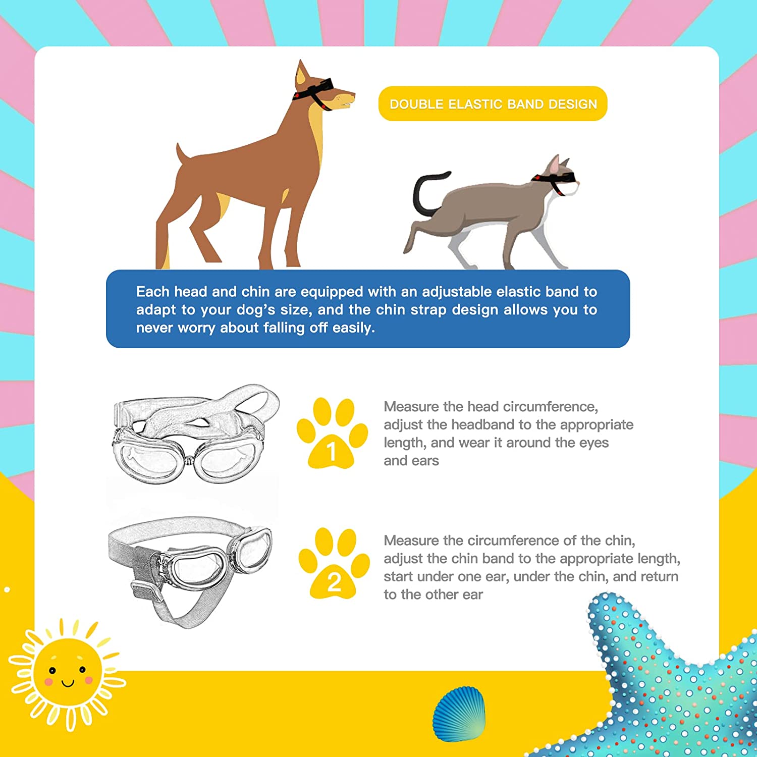 - 1.[Glasses material]: The lenses are made of AC resin UV400, and our lenses are certified by a professional organization UV400. The frame is made of EVA+PC material, which is durable, lightweight, comfortable, and protects pet eyes from UV rays to the greatest extent.