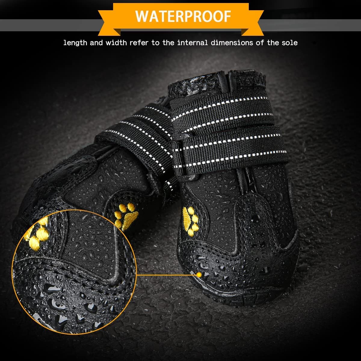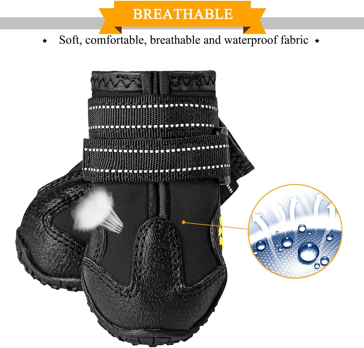 Waterproof Boots for Dogs, Dog Booties with Anti-Slip Sole Reflective Straps