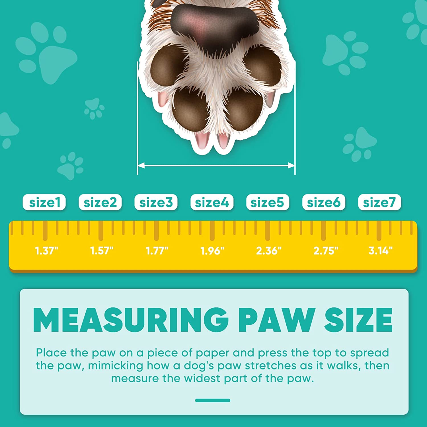 - Size Selection】Please carefully measure the width of the dog's paw, this is the key to choosing the right size for your dog, the size is manually measured based on the inside diameter of the shoe. Size XXS: 1.37"x1.77"(W*L); Size XS: 1.57"x1.96"(W*L); Size S: 1.77"x2.16"(W*L); Size M: 1.96"x2.36"(W*L); Size L: 2.36"x2.75"(W*L); Size XL: 2.75"x3.14"(W*L); Size XXL: 3.14"x3.54"(W*L)